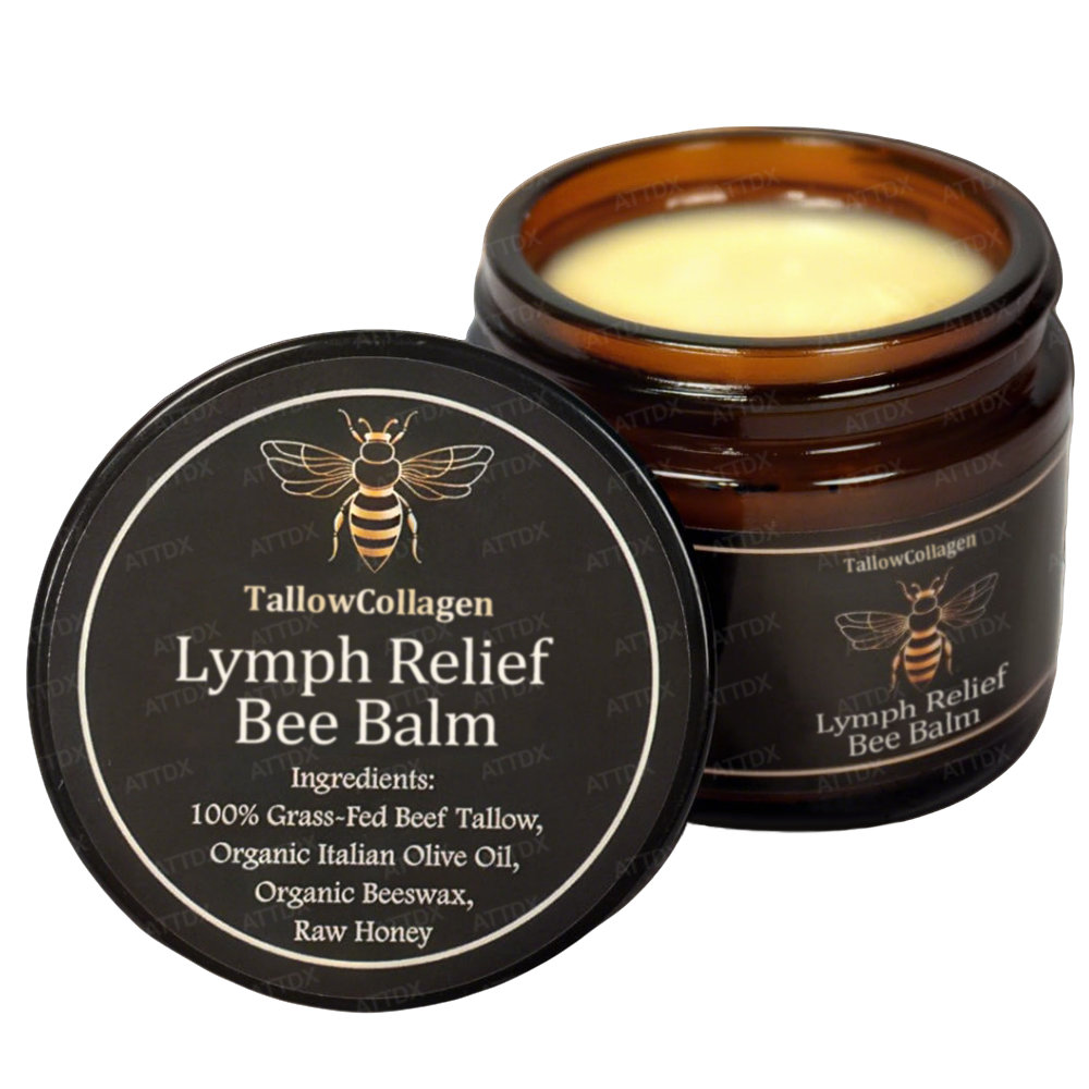 ATTDX® TallowCollagen Lymph Relief Bee Balm blends potent natural ingredients to support healthy circulation, skin nourishment, and fluid balance.