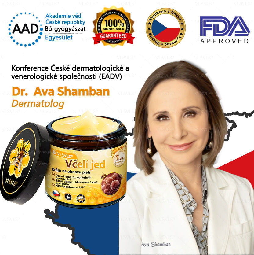 „Jako dermatoložka jsem se vždy snažila najít účinná a přírodní řešení kožních problémů. Po rozsáhlém výzkumu a testování mým laboratorním týmem a po klinických studiích s více než 2 000 účastníky jsem zjistil, že včelí jed je účinná přírodní složka, která může pomoci při různých kožních problémech. To mě vedlo k vývoji VLSVLS™ Obnovující krém se včelím jedem - multifunkčního řešení, které je navrženo tak, aby přirozeně, účinně a přesně zmírňovalo širokou škálu kožních problémů.“ - Dr. Kylea Allora, MD. Dermatoloog